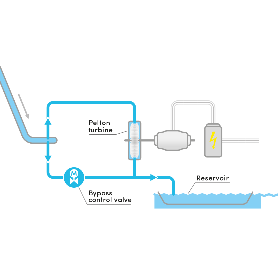 Our reliable control valve technology for hydroelectric power plants ensures reliable power generation, which is created by utilizing the geodetic height difference between high-altitude sources and the water discharge in the valley. At the high-altitude water reservoir, electricity is generated by the water pressure via a Pelton turbine in the valley. A bypass control valve facing enormous differential pressure is installed in order to protect the process to the turbine. In mountainous regions of Switzerland, Austria, Norway as well as Germany, ARCA’s control technology actively contributes to the generation of “green electricity” by hydropower plants.